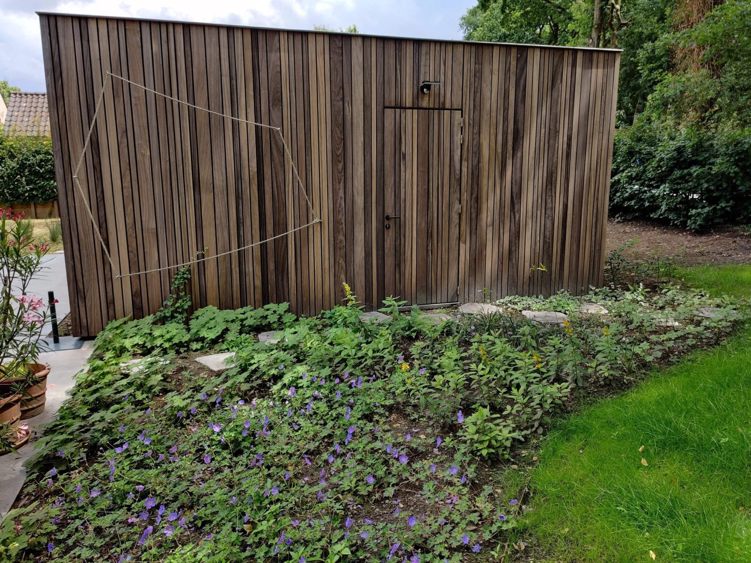 Na de verbouwing van het huis – waar een jong gezin en grootouders samen onder één dak gingen wonen – kreeg ook de tuin een doordachte heraanleg. Aan de zuidkant brengen bloemrijke graslanden licht, kleur en openheid. Achteraan werd een bostuin gecreëerd met een gelaagde onderbegroeiing en bloeiende bosvegetatie. Het resultaat is een levendige en speelse tuin, waar kleinkinderen kunnen ravotten en verschillende generaties samen van het buitenleven genieten.